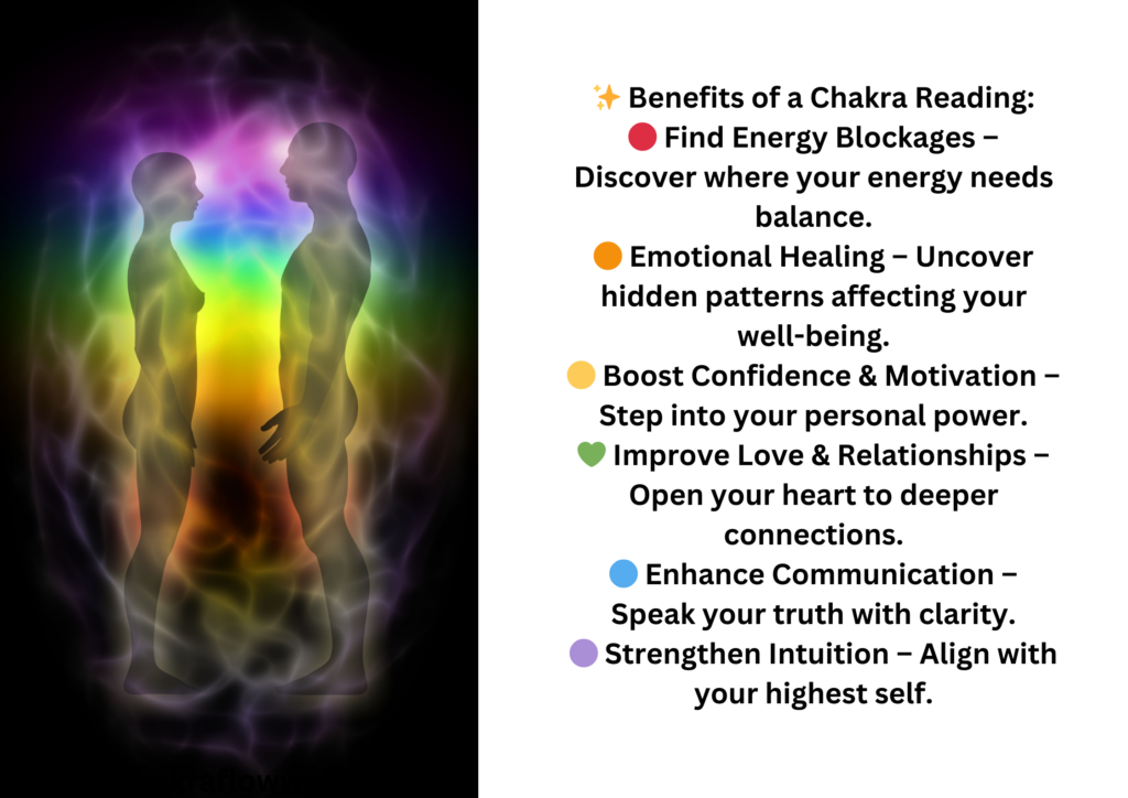 🔴 Identify Energy Blockages – A chakra reading can reveal which chakras are overactive or underactive, allowing you to focus on specific areas for healing.
